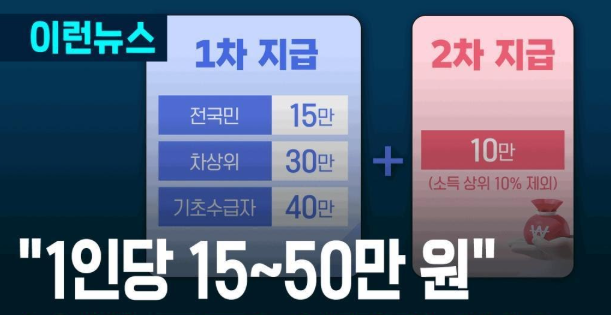 - 2차 지급: 8월 중 (소득 상위 10% 제외, 추가 10만원)
